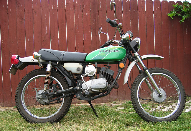 This is the first dirt bike that I had purchased. It cost me $40 and I had this bike for a number of years. The bike was 5 gears all up as opposed to the standard neutral being between gears 1 and 2. This bike started to run weaker after years of riding and after replacing broken parts with home made parts. The bike needed rings and probably required a bore to the next size. The bike never had any compression though and you could actually start with it with only a half kick of the kick start. You could actually start it by hand even if you gave several tries.