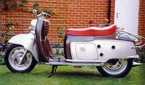 A smaller capacity 175cc model and from August 1957 a 277cc version was available, the latter being especially useful for use with a sidecar. Standard features of the Letta included an 8 day illuminated clock, luggage rack and a little hook for your brief case, fitted just in front of the rider. Easy access to the spark plug and fuel tank was gained by lifting the seat. Complete rear bodywork can be removed in less then a minute which gives access to the engine, carb, chain case etc. Optional extras included attractive chrome wheel trims.