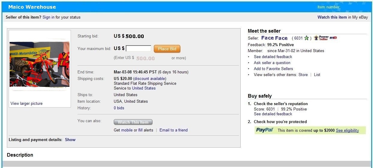 Maico 501's, Maico 490's, Maico 400's, Maico 250's, early 70s, late 70s, early 80s, all the Maico bikes in one warehouse! These bikes are in mint condition and totally perfect. You are bidding on a map that shows the location of this warehouse full of Maicos. Also included are the times that the owner will not be around and a list of people who want to buy Maicos.